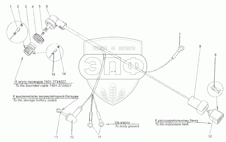 Каталог запасных частей к технике: МЗКТ-7401. Жгут проводов 692374-3724588-11