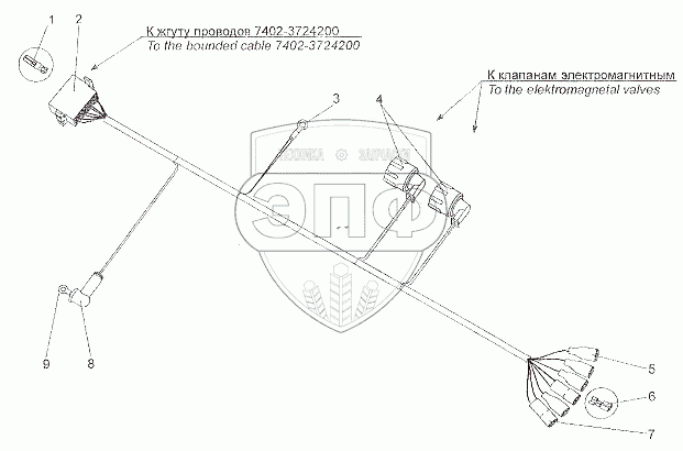 Каталог запасных частей к технике: МЗКТ-7401. Жгут проводов 7402-3724594
