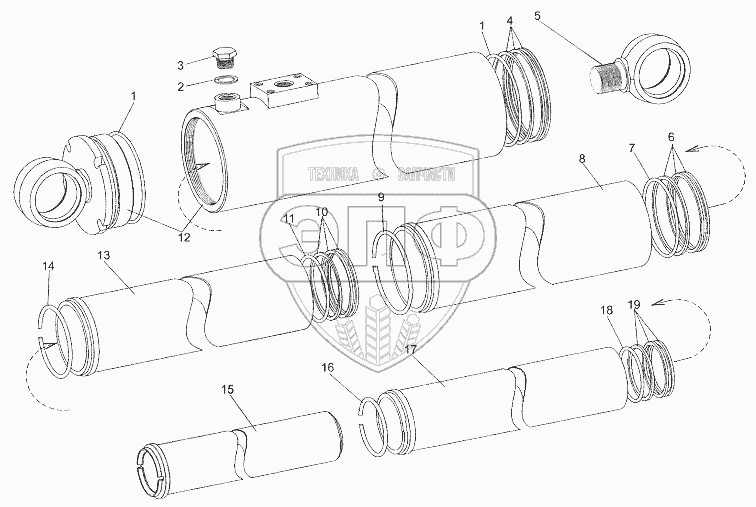 Каталог запасных частей к технике: МЗКТ-7402. Гидроцилиндр 6527-8603010