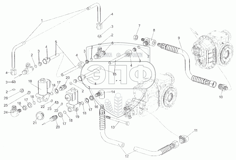 Каталог запасных частей к технике: МЗКТ-7402. Привод управления механизмами блокировки дифференциалов