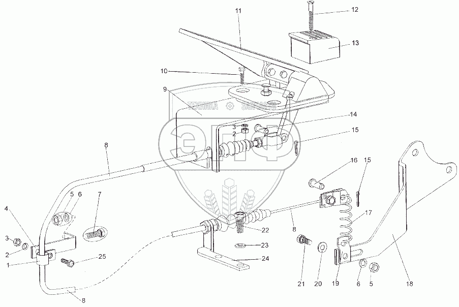 Каталог запасных частей к технике: МЗКТ-7402. Привод управления подачей топлива