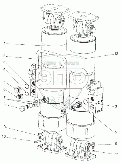 Каталог запасных частей к технике: МЗКТ-7402. Установка гидроцилиндров