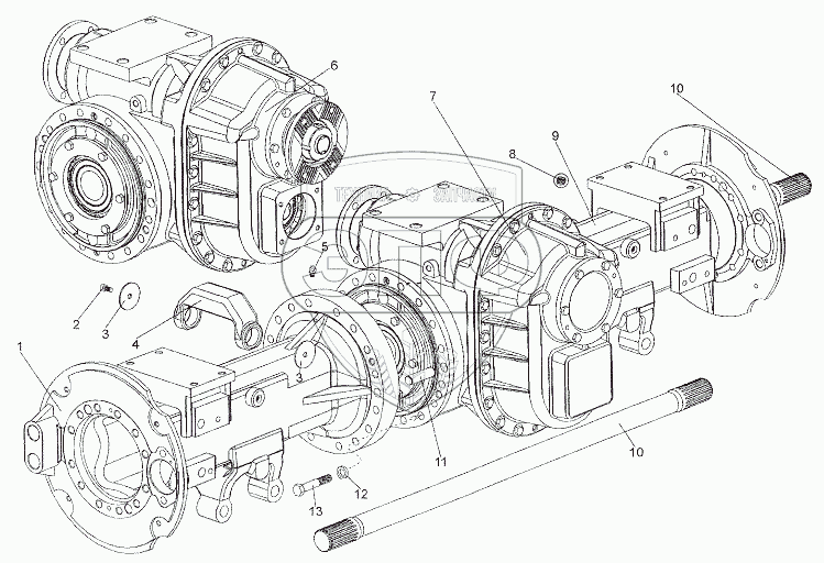 Каталог запасных частей к технике: МЗКТ-7402. Установка редуктора задних мостов