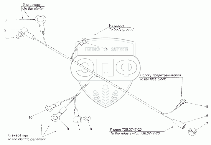 Каталог запасных частей к технике: МЗКТ-7402. Жгут проводов питания 7401-3724173