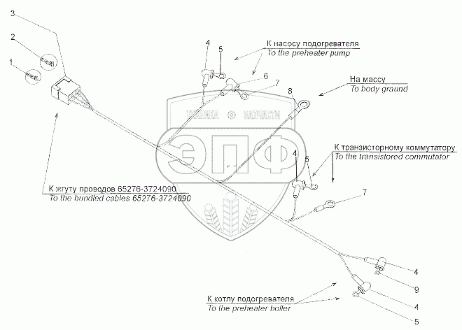 Каталог запасных частей к технике: МЗКТ-7402. Жгут проводов подогревателя 7401-3724120