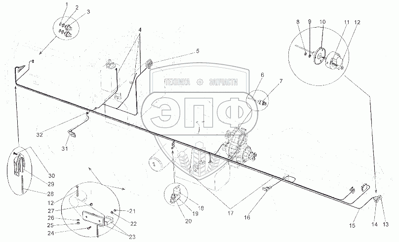 Каталог запасных частей к технике: МЗКТ-7402. Жгуты проводов по левому лонжерону