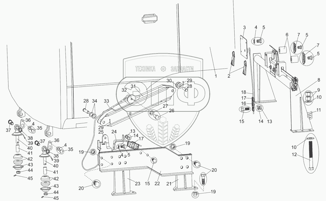 Каталог запасных частей к технике: МЗКТ-74131. Установка кабины