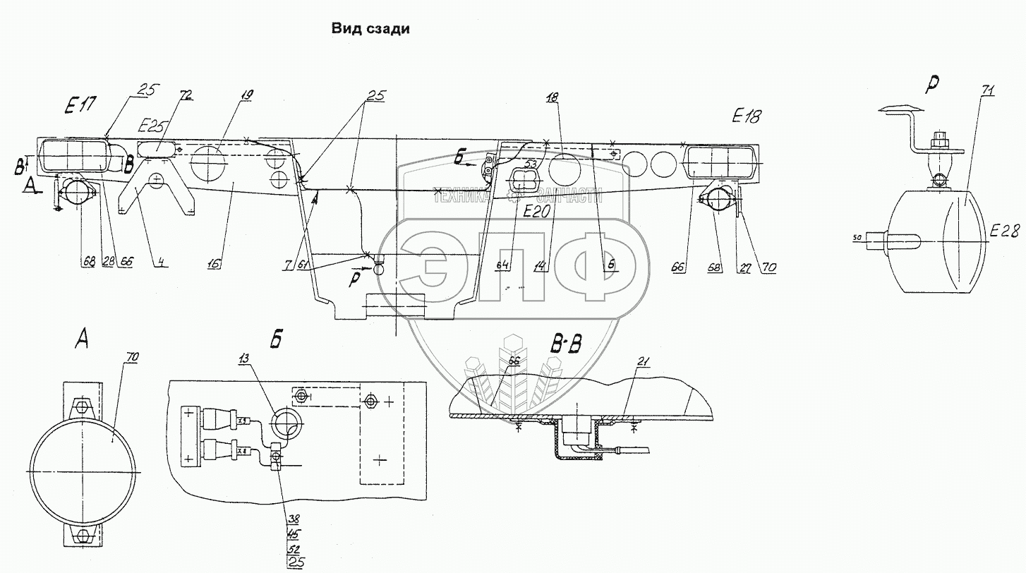 Каталог запасных частей к технике: МЗКТ-74131. Установка задних фонарей