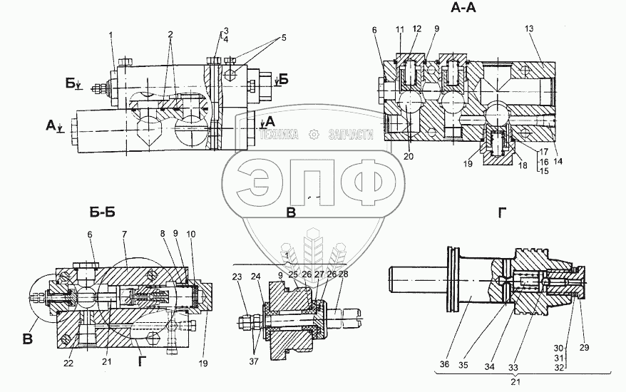 Каталог запасных частей к технике: МЗКТ-74171. Блок клапанов 8021-3420010-10