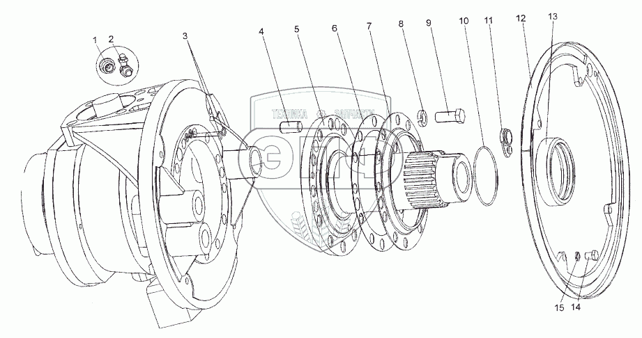Каталог запасных частей к технике: МЗКТ-74171. Мост передний с цапфой