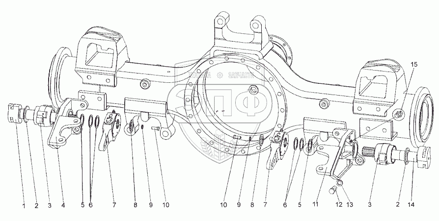 Каталог запасных частей к технике: МЗКТ-74171. Привод тормозов среднего моста