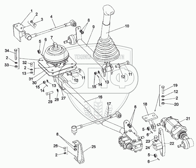 Каталог запасных частей к технике: МЗКТ-74171. Привод управления механизмом переключения передач