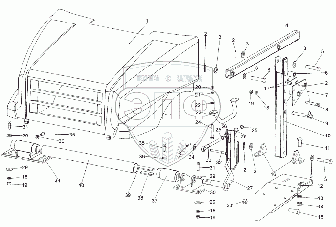 Каталог запасных частей к технике: МЗКТ-74171. Установка капота