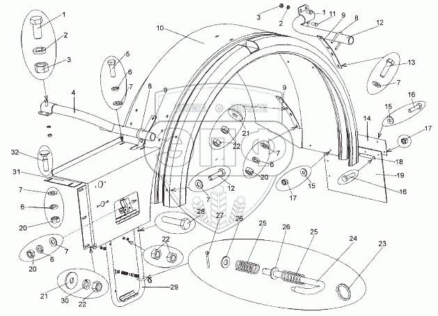 Каталог запасных частей к технике: МЗКТ-74171. Установка передних крыльев
