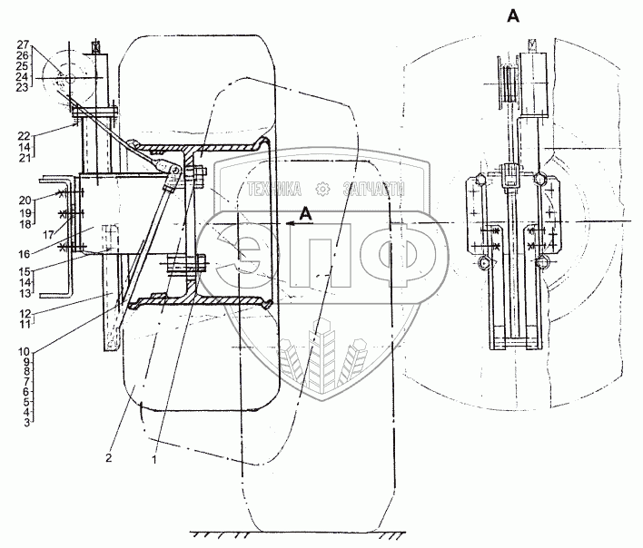 Каталог запасных частей к технике: МЗКТ-74171. Установка подъемника запасного колеса