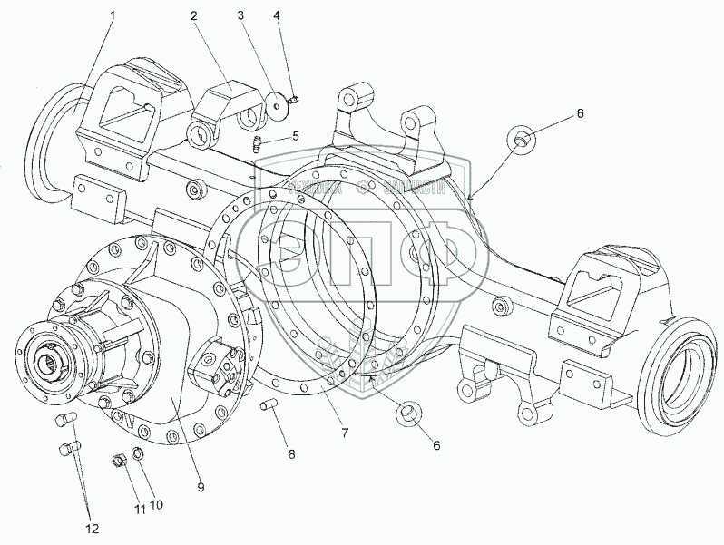 Каталог запасных частей к технике: МЗКТ-74171. Установка редуктора заднего моста