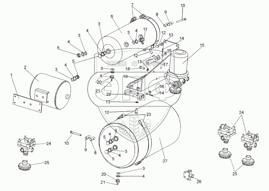 Каталог запасных частей к технике: МЗКТ-74171. Установка ресиверов и аппаратов