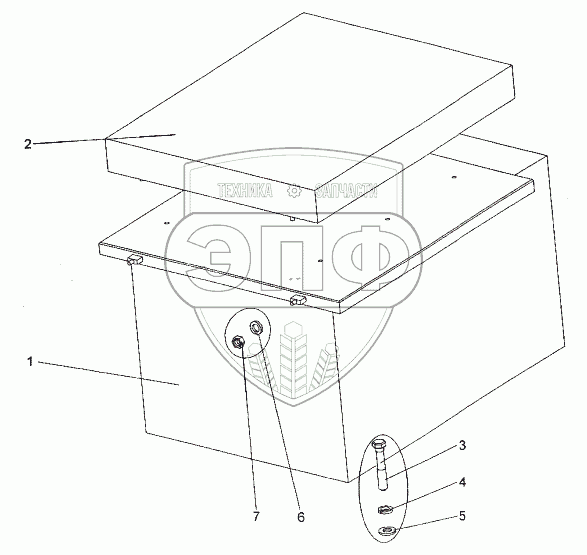 Каталог запасных частей к технике: МЗКТ-74171. Установка ящика