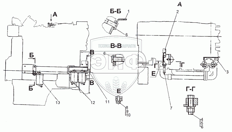 Каталог запасных частей к технике: МЗКТ-74296. Установка агрегатов топливной системы