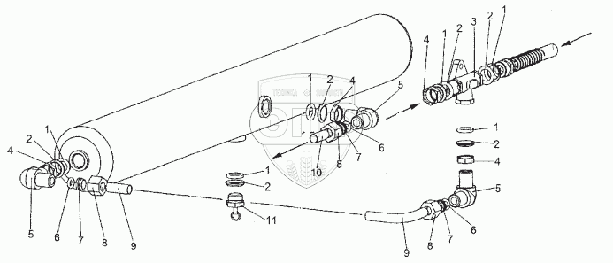 Каталог запасных частей к технике: МЗКТ-74296. Установка клапана двухмагистрального