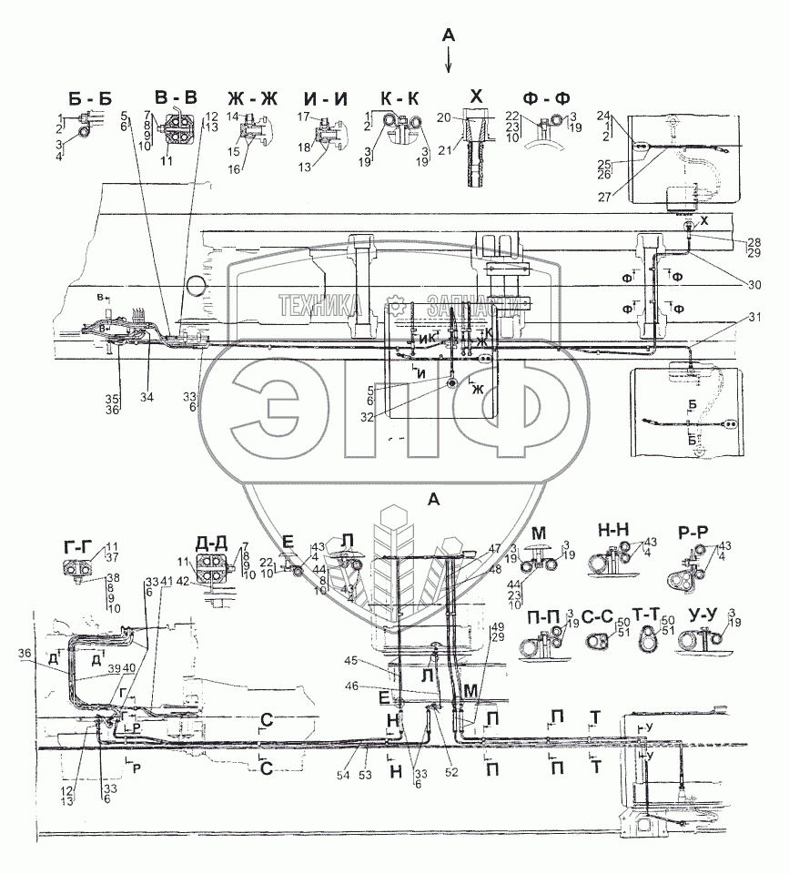 Каталог запасных частей к технике: МЗКТ-74296. Установка топливопроводов