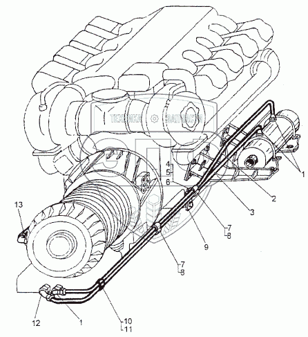 Каталог запасных частей к технике: МЗКТ-74296. Установка трубопроводов ГМП