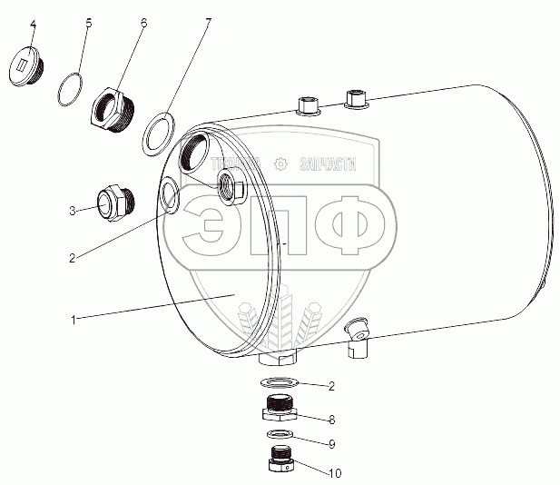 Каталог запасных частей к технике: МЗКТ-751652. Бачок топливный подогревателя 79092-1015420
