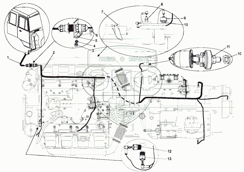 Каталог запасных частей к технике: МЗКТ-751652. Установка электрооборудования на двигателе