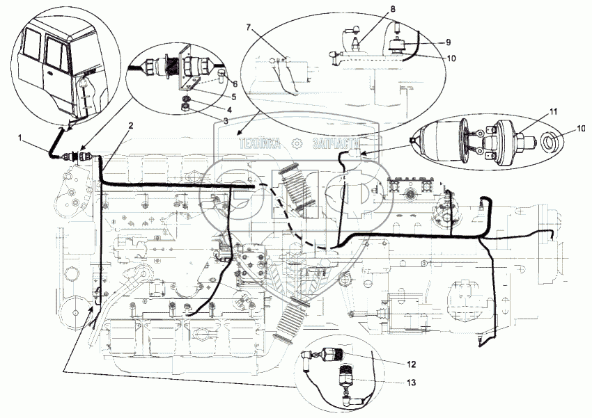Каталог запасных частей к технике: МЗКТ-751652. Установка электрооборудования на двигателе