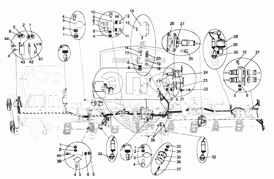Каталог запасных частей к технике: МЗКТ-751652. Установка электрооборудования на шасси