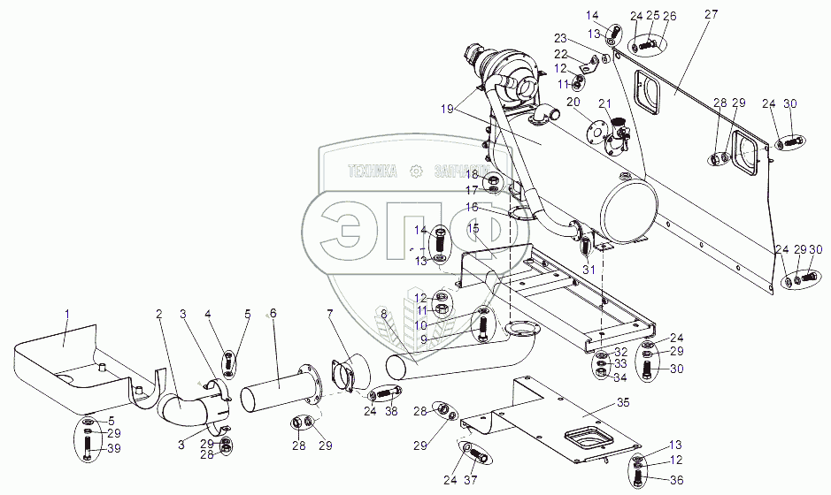 Каталог запасных частей к технике: МЗКТ-751652. Установка подогревателя и выхлопных труб