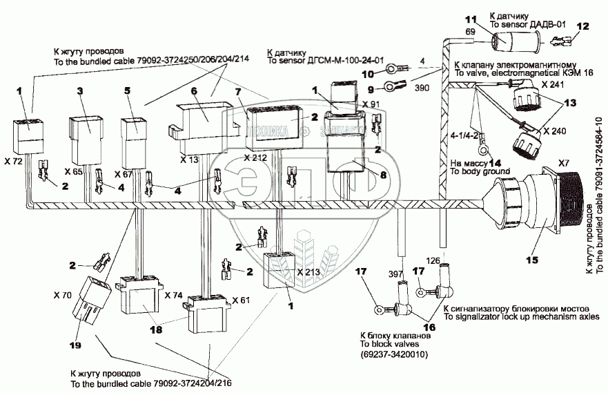 Каталог запасных частей к технике: МЗКТ-751652. Жгут проводов 79091-3724027-10