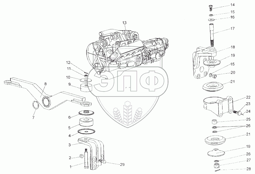 Каталог запасных частей к технике: МЗКТ-79011. Установка двигателя