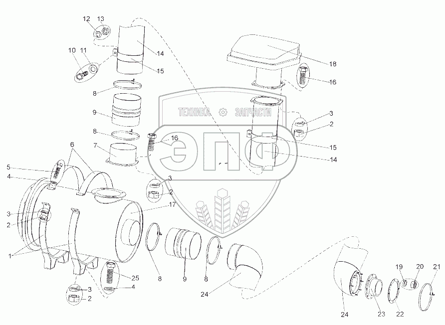 Каталог запасных частей к технике: МЗКТ-79011. Установка воздухоочистителя