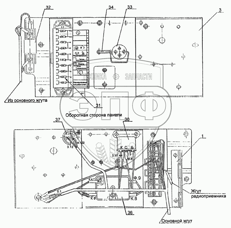 Каталог запасных частей к технике: МЗКТ-79092. Панель блоков предохранителей и реле