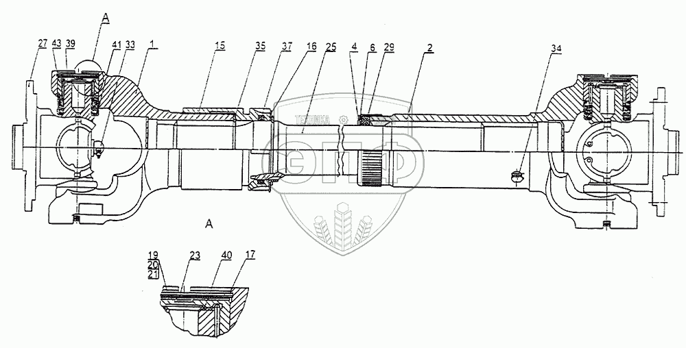 Каталог запасных частей к технике: МЗКТ-79092. Вал карданный полуосевой