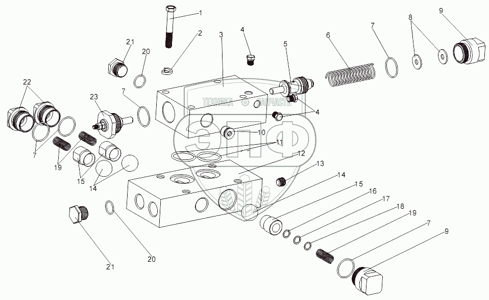 Каталог запасных частей к технике: МЗКТ-7930-200. Блок клапанов 79092-3420010