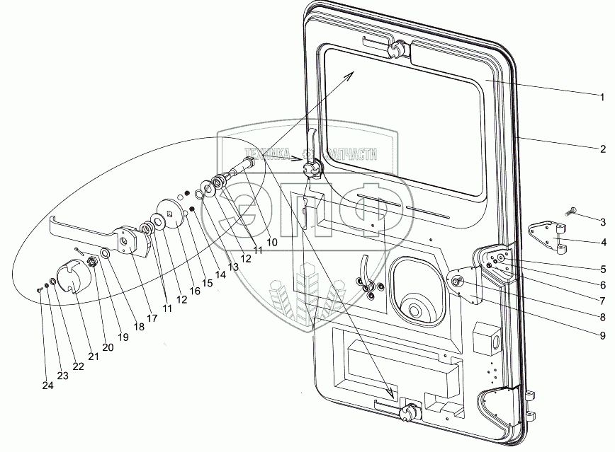 Каталог запасных частей к технике: МЗКТ-7930-200. Дверь левая, дверь правая