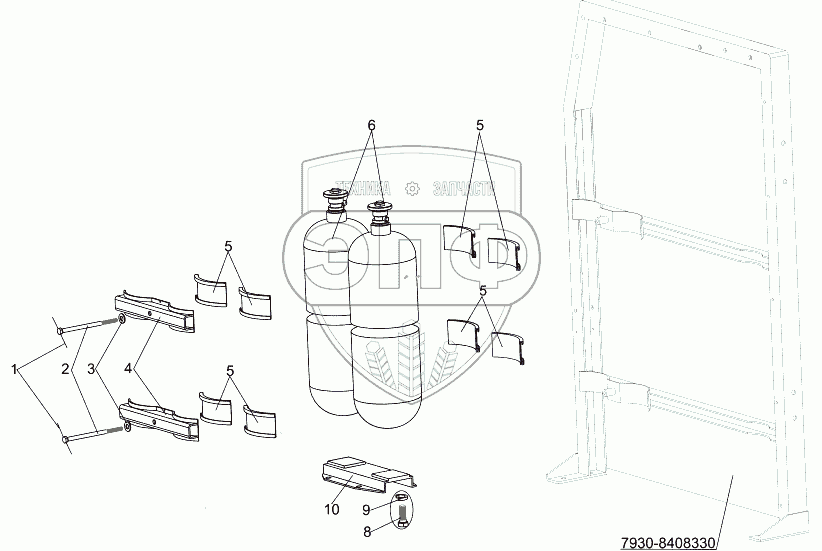 Каталог запасных частей к технике: МЗКТ-7930-200. Крепление баллонов для воздуха