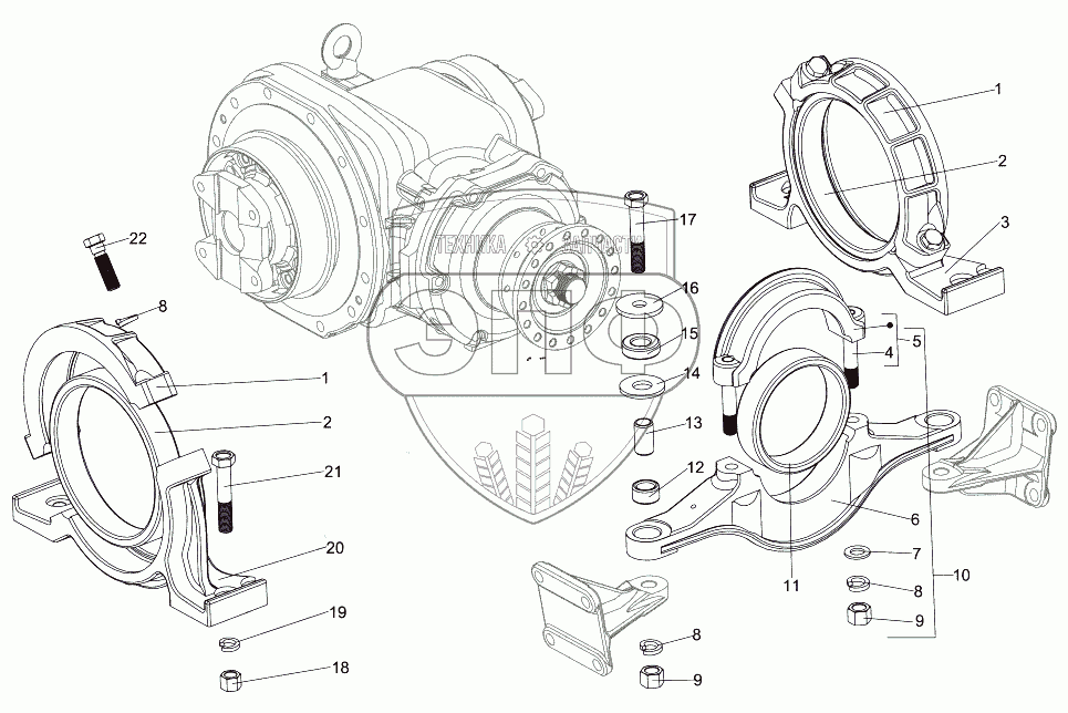 Каталог запасных частей к технике: МЗКТ-7930-200. Подвеска редуктора моста