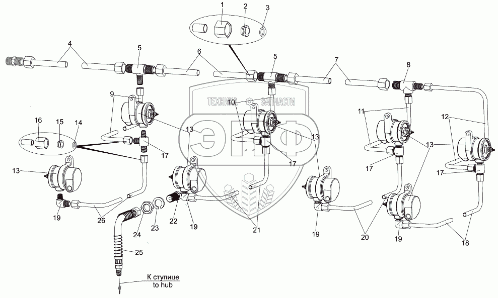 Каталог запасных частей к технике: МЗКТ-7930-200. Трубопроводы системы накачки шин