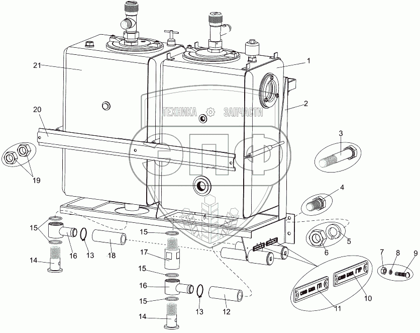Каталог запасных частей к технике: МЗКТ-7930-200. Установка баков