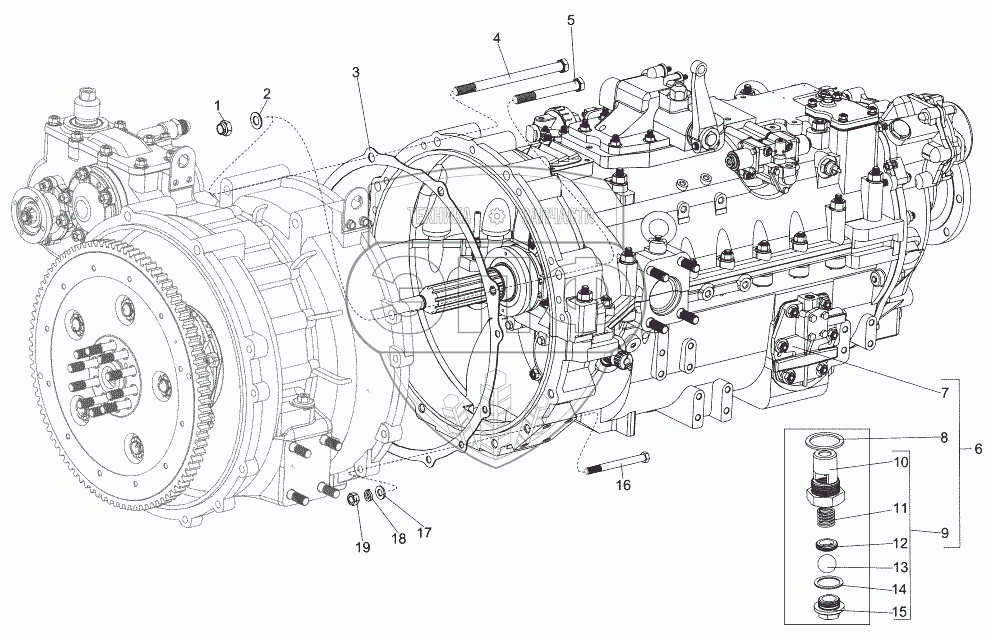 Каталог запасных частей к технике: МЗКТ-7930-200. Установка коробки передач