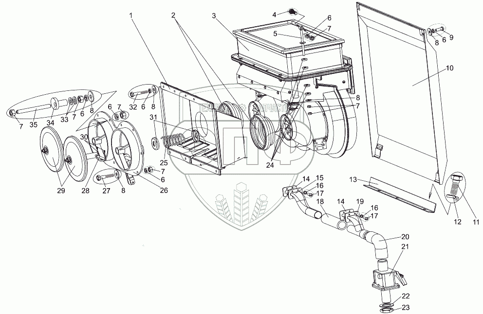 Каталог запасных частей к технике: МЗКТ-7930-200. Установка отопителя