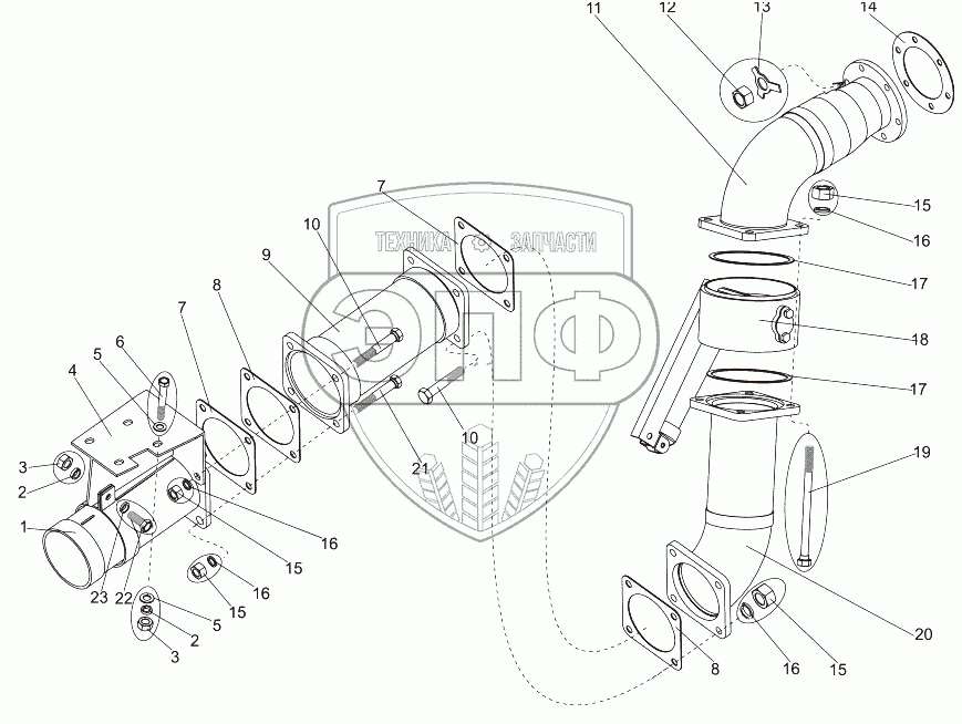Каталог запасных частей к технике: МЗКТ-7930-200. Установка системы выпуска газов
