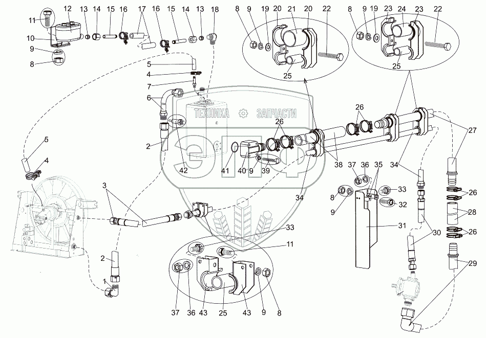 Каталог запасных частей к технике: МЗКТ-7930-200. Установка трубопроводов силовых магистралей