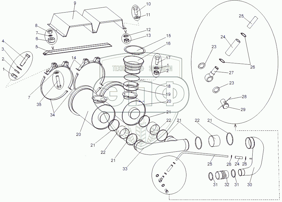 Каталог запасных частей к технике: МЗКТ-7930-200. Установка воздухоочистителей