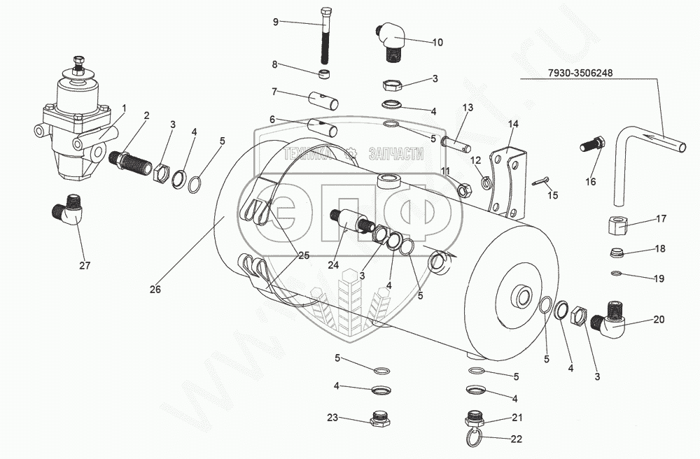 Каталог запасных частей к технике: МЗКТ-7930-200. Установка воздушного баллона потребителей