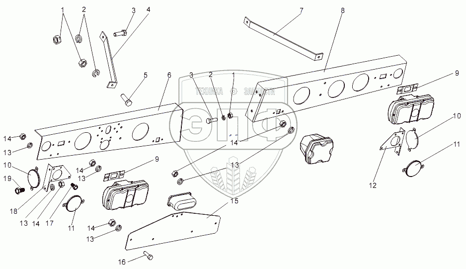 Каталог запасных частей к технике: МЗКТ-7930-200. Установка задних фонарей