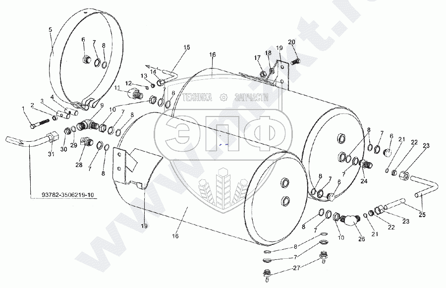 Каталог запасных частей к технике: МЗКТ-93782. Установка воздушных баллонов